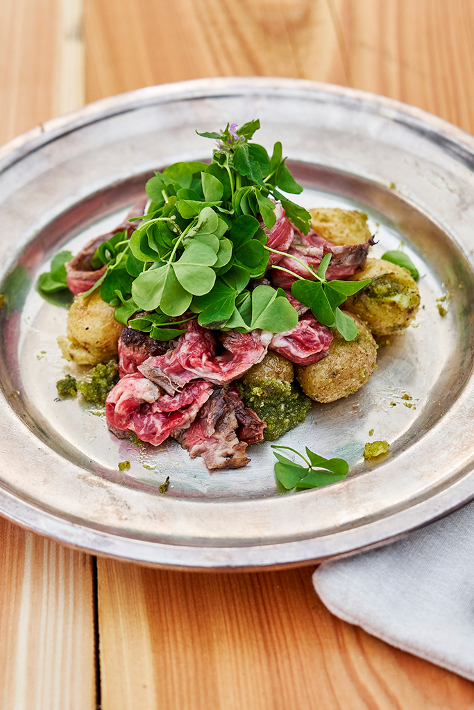 Reh im Feuertopf mit Brezenknödel-Soufflé